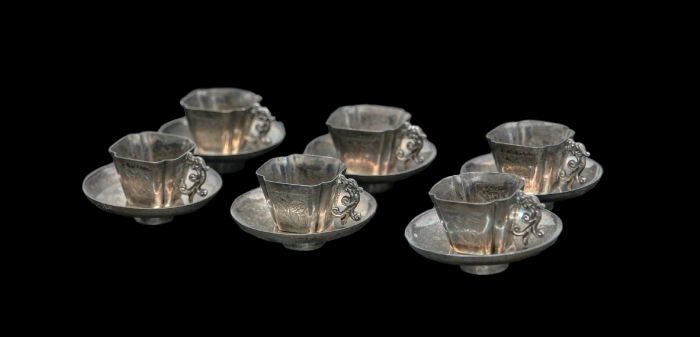 民国天宝银楼银酒杯酒托六件套,6.0*3.32cm,42g;6.0*3.32cm,42g;6.0*3.32cm,42g;6.0*3.32cm,42g;6.0*3.32cm,42g;6.0*3.32cm,42g