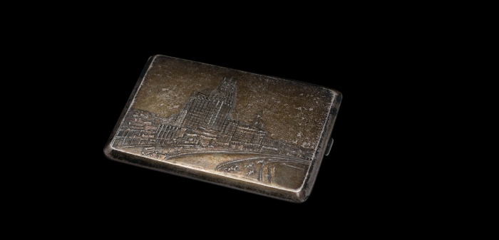 民国老上海纯银烟盒费文元款,11.68*8.11*0.94cm,113g