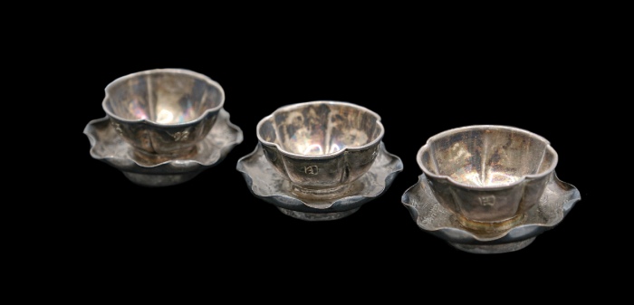 民国上海费文元裕记酒杯酒托三件套,7.23*3.46cm,66g;7.23*3.46cm,66g;7.23*3.46cm,66g
