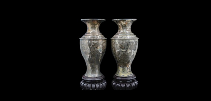 民国银花瓶费文元款,22.5*8.6cm,318g;22.5*8.6cm,318g