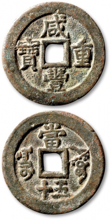 清“咸丰重宝”宝昌局当五十一枚,直径:52.4mm,钱体圆整,字口挺拔清晰,包浆醇熟,海外回流,极美品