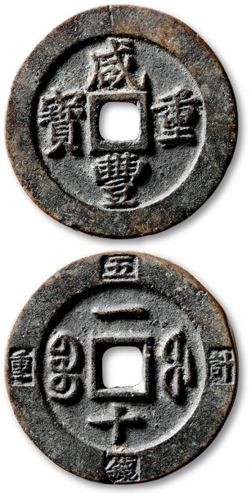 清“咸丰重宝”宝川局当五十一枚,直径:50.8mm,钱体圆整,字口挺拔清晰,包浆醇熟,海外回流,极美品