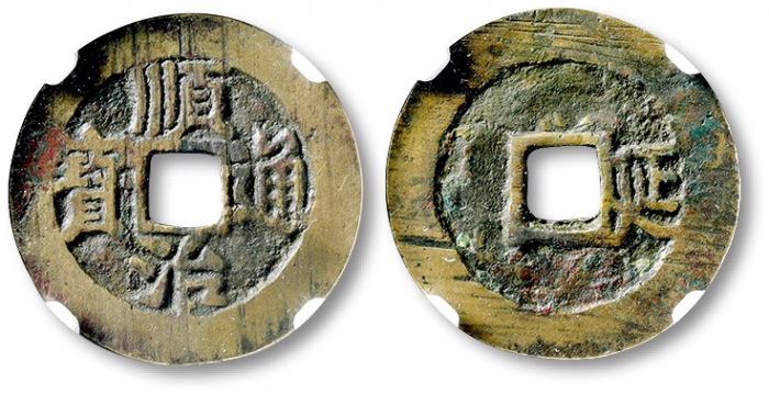 清“顺治通宝”背右“延”一枚,少见,直径:24.7mm,字口清晰,铜色黄亮,包浆醇熟,公博 美85(1113273668)