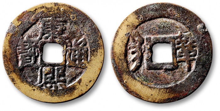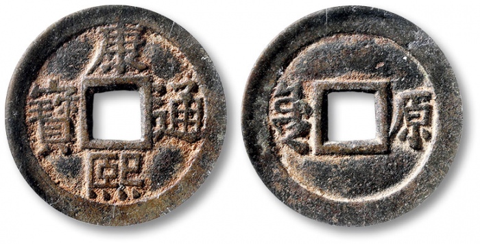 清“康熙通宝”背满汉“原”川炉套子钱一枚,双点通,直径:26.1mm,文字挺拔清晰,地章平整,包浆熟美自然,极美品,公博 美80(80795153)