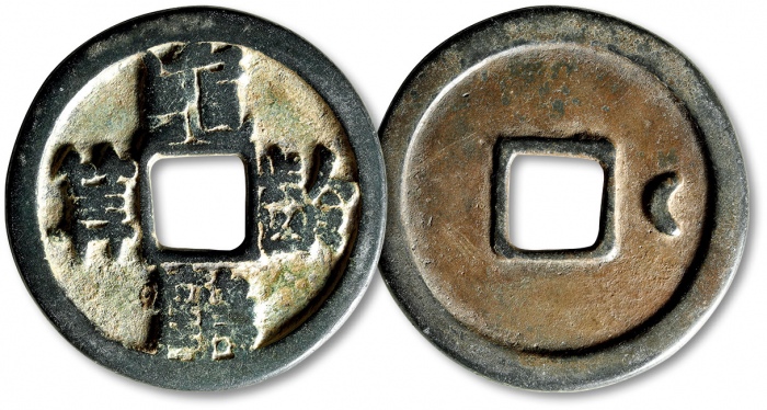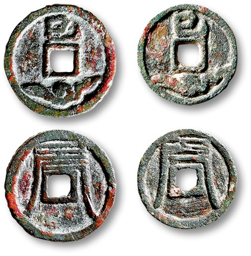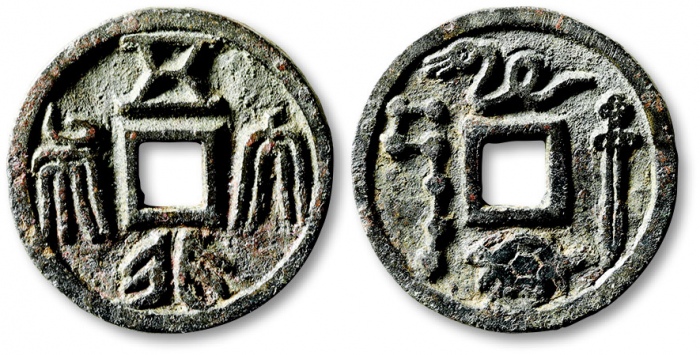 早期“巳”蛇花钱二枚,直径分别为:16.5mm、14.7mm,极美品