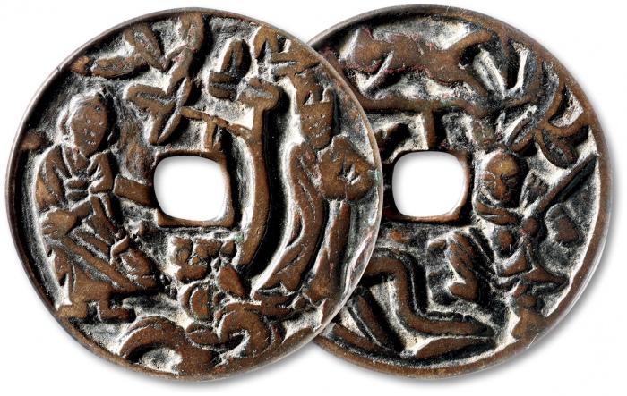早期“人物故事”花钱一枚,直径:53mm,钱体圆整,图案清晰立体,包浆醇厚,沪上藏家出品,公博 美78(1114951965)