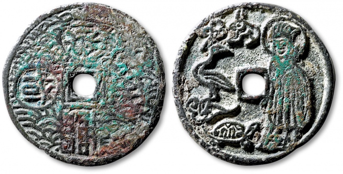 早期“万国佛”背“卯兔星官”花钱一枚,直径:42.7mm,纹饰图案清晰,品种少见,公博 少泉鉴定 美品18(1114025166)