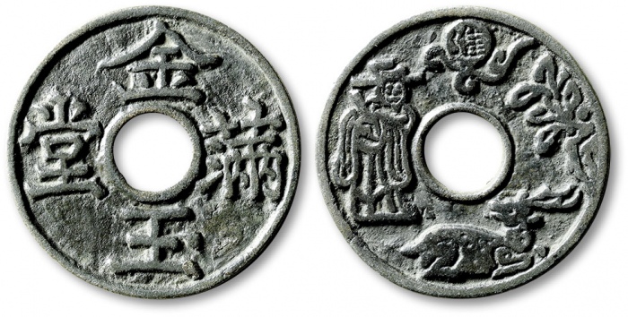 早期“金玉满堂”背“加官进禄”花钱一枚,直径:33.6mm,钱体圆整,文字图案均清晰挺拔,包浆厚重,极美品