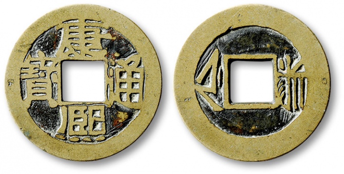 清“康熙通宝”背满汉“南”部颁套子钱一枚,直径:27.7mm,文字挺拔清晰,地章平整,包浆温润自然,极美品,保粹致臻 美82(B0022M5446)