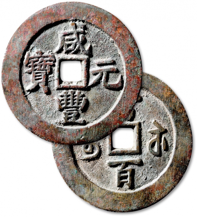 清“咸丰元宝”宝源局当百一枚,直径:50mm,铸造精美,铜质精良,文字清晰深峻,包浆醇美,品相上佳,极美品