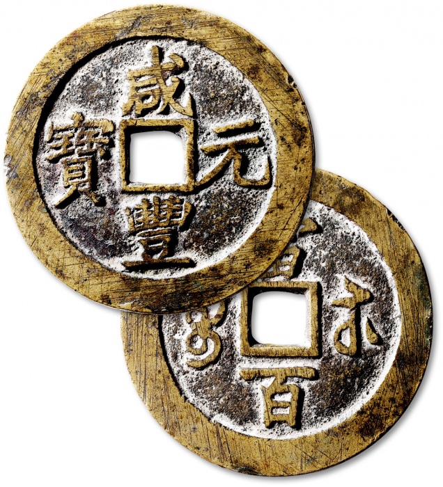 清“咸丰重宝”宝苏局当百一枚,断笔咸,直径:62.7mm,此币铸造精良,字口深峻清晰,形制规整,包浆自然,极美品