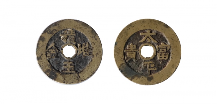 清堆金积玉太平富贵圆孔花钱,4.5*4.5cm