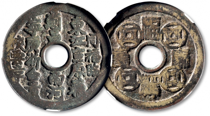 清“太平富贵”背“龙凤”云贵炉花钱一枚,直径:72.9mm,字口清晰,包浆醇厚熟润,闻德 78(190909000332382)