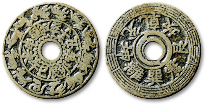 清“十二生肖”背“八卦”花钱一枚,直径:33.8mm,字口图案清晰,铜色清亮,极美品