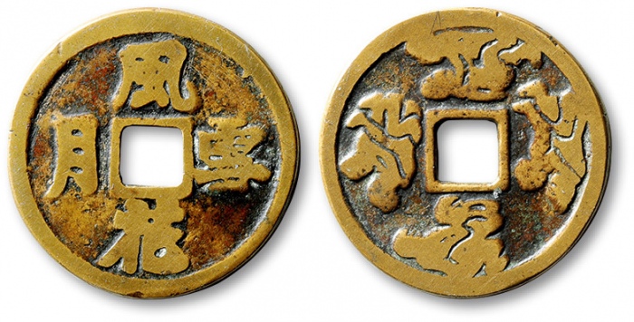 清“风花雪月”花钱一枚,直径:26.4mm,文字清晰,包浆温润熟美,极美品,附孙仲汇先生题拓<br>来源:孙仲汇先生旧藏