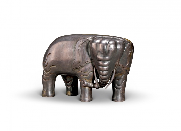 安南“绍治六年奉造·银重九两二钱五分”吉象摆件一只,重:351.4g,造型优美,包浆醇正,保存完好