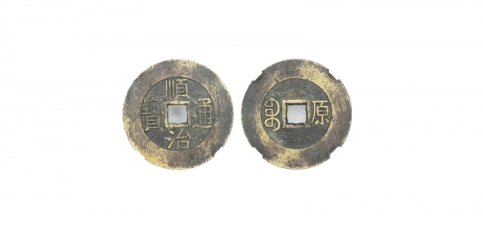 清代顺治通宝单字记式小平背宁 上美品
