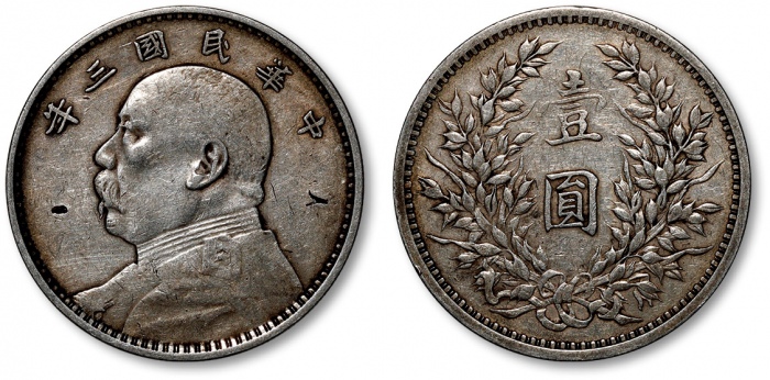 民国三年袁世凯像壹圆银币一枚,整体清晰,灰色老包浆,状态自然,沪上前辈藏家出品,极美品