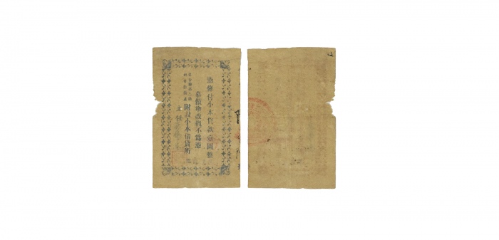 民国二十九年第三区杨芦乡薛恒兴货尾劵二角,乃属抗战时期江苏盐城地区之地方辅币,8.6*5.0cm