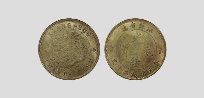 1902清江苏省造光绪元宝中花每元当钱二十文铜币,PCGS 80221250 MS63 ,3.2*0.14cm,14.1g