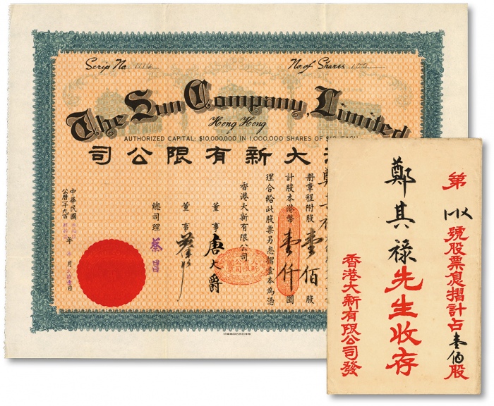 民国十九年(1930年)福峡长途汽车股份有限公司股票,拾股计国币壹仟元;该公司由菲律宾华侨“郑玉书”于1929年创办于福州,福建老股票之极罕见精品,八五成新<br>编者按:郑玉书(1887~1965年)名崇瑞,又名瑞麟,生于福建永春仙夹乡夹輶村。少时曾往菲律宾宿务,协助其父经营振东商行。后回国在北京攻读医科。辛亥革命后于福建军中各部任军医官长。民国十年秋起,历任永春县工务局局长,厦门道道尹,福建省长公署高等顾问,孙传芳的五省联军咨议、联军总部财政秘书兼江苏烟酒事务局局长、安徽财政厅厅长,以及段祺瑞政府的财政、外贸参议。