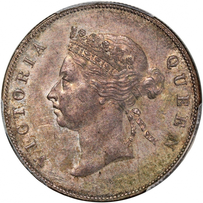亚洲钱币5枚, Asian Coins, a group of 5 coins, consists of: Hong Kong, 5 cents, 1890-H, French Indo-China, 20 cents, 1937, British North Borneo, 2 1/2 cents, 1920-H, Straits Settlements, 20 cents, 1884, and India British, silver rupee, 1887-B, raised,grade ...