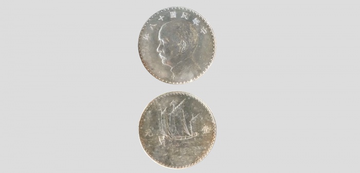 民国十八年孙中山像背三帆船壹圆银币样币(奥地利版),3.9*0.24cm 26.8g