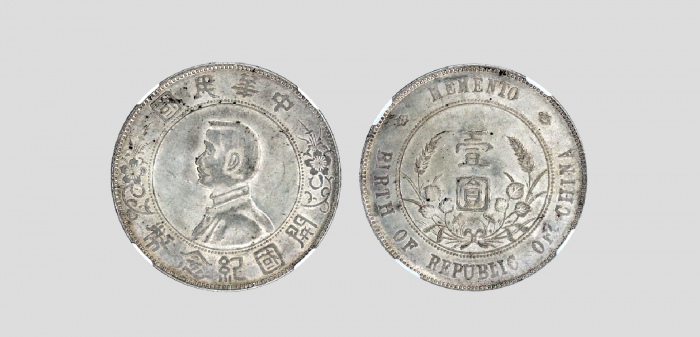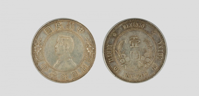 1912民国开国纪念币孙中山像背嘉禾壹圆银币下五星版,PCGS 87297336 MS63+ ,3.89*0.24cm,27g