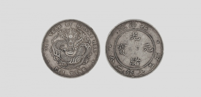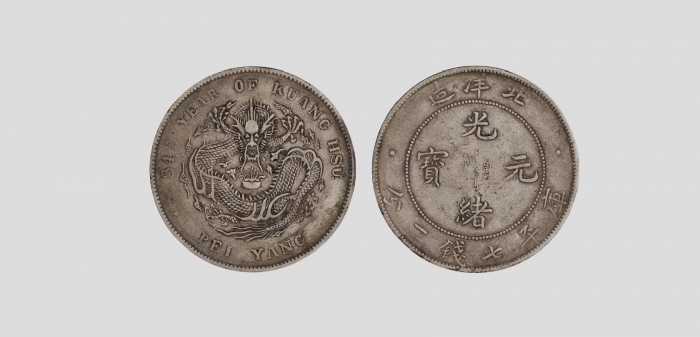 1908清光绪三十四年北洋造光绪元宝库平七钱二分银币,PCGS 86001765AU50,3.9*0.24cm,26.8g