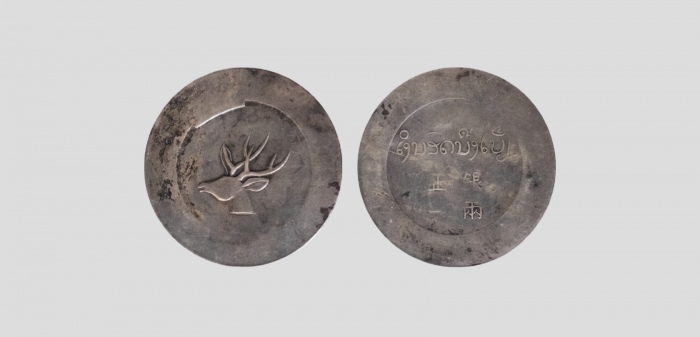 1943-44年云南“大鹿头”正银一两银币一枚,此币打制完美,压力十足,图案清晰饱满,灰色淡五彩包浆,状态舒服,品相上佳,十分难得,珍罕,值得珍视与推重,金盾PCGS AU Detail(85345764)著录:孙浩著《百年银元》原物 ...
