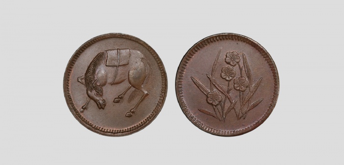 1912民国四川省造马兰俯首马五文铜币背兰花,PCGS 45510532 MS63BN ,2.23*0.15cm,1.9g