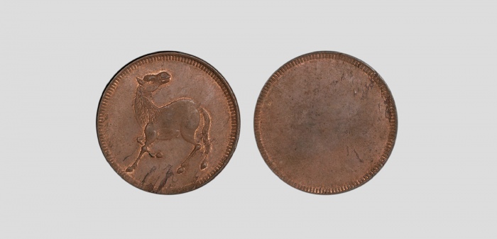 1912民国四川省造马兰回首马十文马单面铜币(黄铜),PCGS 29805402 MS62 ,2.8*0.15cm,2.0g