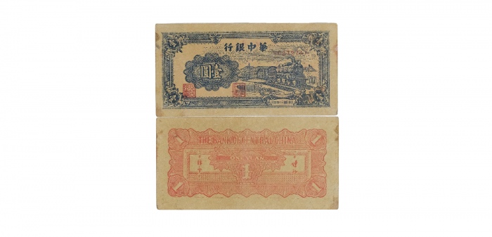 民国三十四年华中银行火车图一元纸钞 SC272747,PMG2048730-003 53 ,10.7*5.5cm