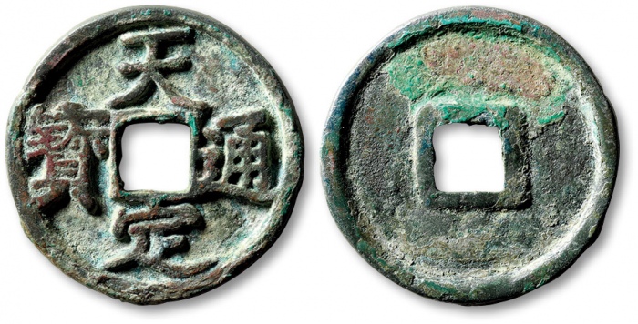“天定通宝”折二一枚,直径:28.6mm,包浆厚重,声音略哑,上美品