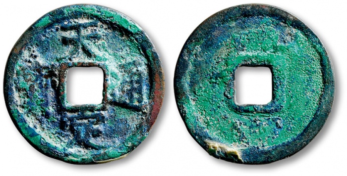 “天定通宝”小平一枚,直径:24.2mm,文字清晰,铸造精美,色泽绚丽,品相一流,极美品