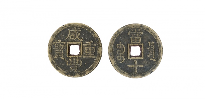 清咸丰重宝宝泉当十大样大撇咸厚重版,3.89*0.36cm 28.6g