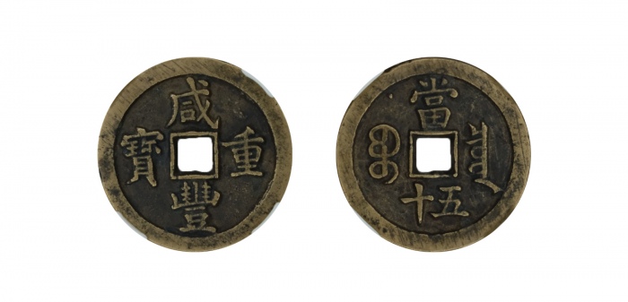 清咸丰重宝宝泉当五十,公博评级 美85 ,4.57*0.42cm 41g
