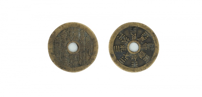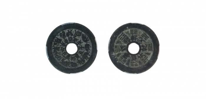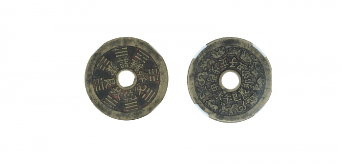 清苏炉山鬼背八卦圆孔花钱,4.56*0.21cm 20.0g