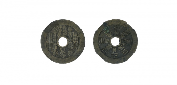 清苏炉山鬼背八卦圆孔花钱,4.83*0.27cm 3.g