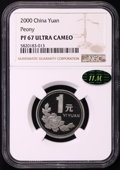 第200366号:2000年精制牡丹1元 NGC PF67UC(11M绿标),发行量20000枚。估价:3500--5000