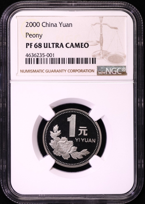 第200365号:2000年精制牡丹1元 NGC PF68UC,发行量20000枚。估价:4000--6000