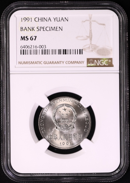 第200266号:1991年1元工作币 NGC MS67,估价:20000--30000