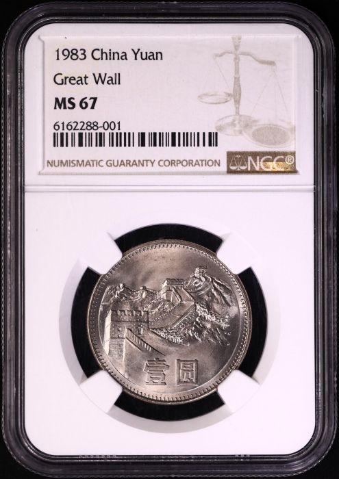 第200179号:1983年普制长城1元 NGC MS67,外盒有磨估价:1300--2500