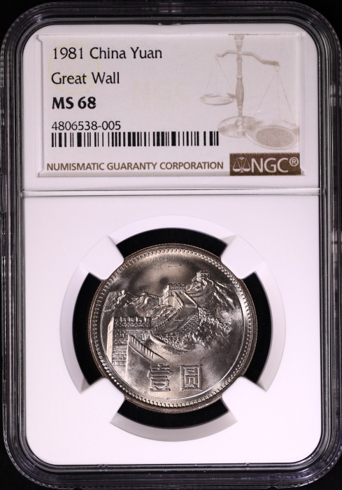 第200109号:1981年普制长城1元 NGC MS68(沈阳版),估价:1500--3000