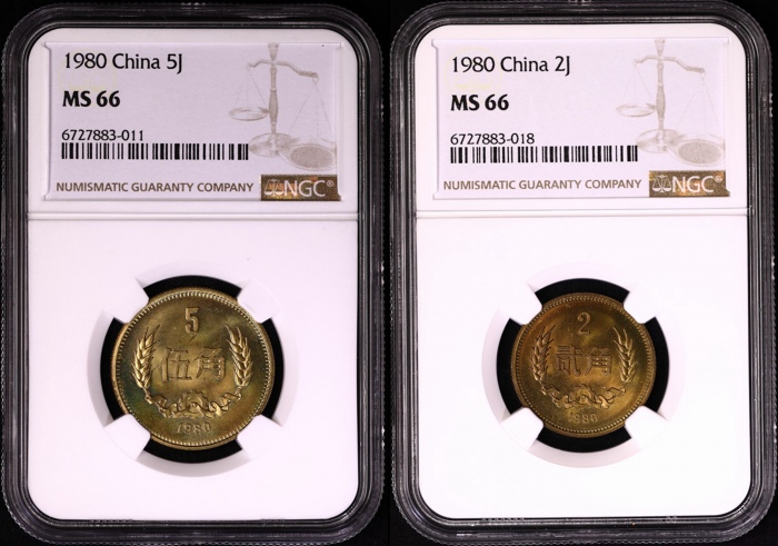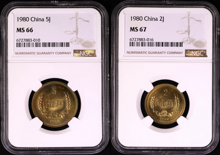 第200070号:1980年普制5角/2角 NGC MS66/67,网站原状态送评,在网站首页可以验证,也可查询原状态送评数量报告。估价:1000--1500