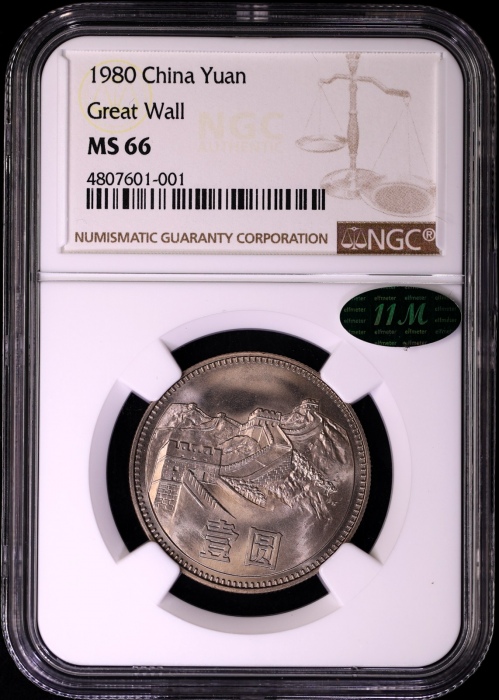 第200057号:1980年普制长城1元 NGC MS66(有砖版),原始光泽,底板细腻。估价:2000--4000