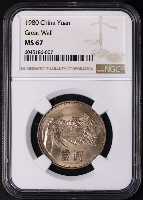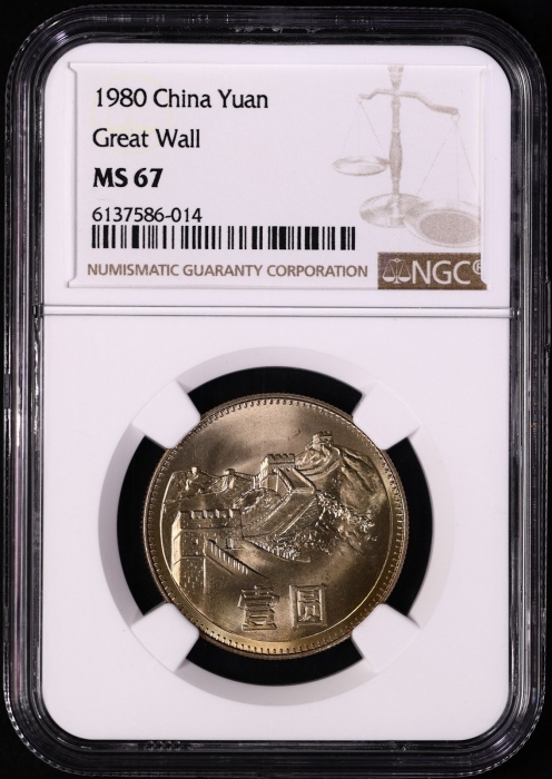 第200048号:1980年普制长城1元 NGC MS67(有砖版),估价:5000--9000