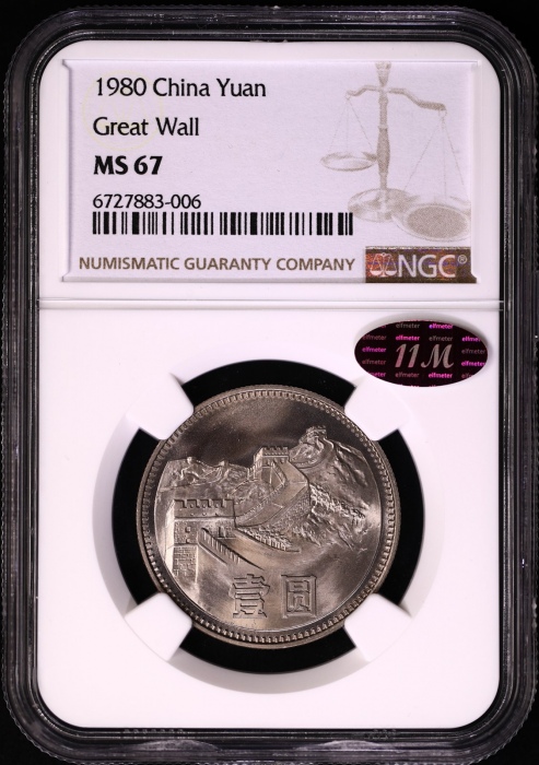第200048号:1980年普制长城1元 NGC MS67(有砖版),估价:5000--9000