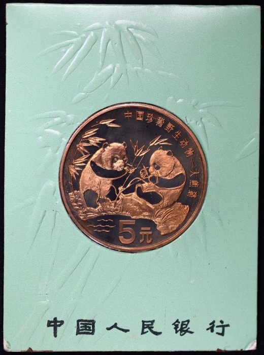 第200712号:1993年大熊猫精制总行礼品币,产量1000枚,总行礼品币,市面十分少见。《中国现代流通硬币标准目录》一书中八大珍之一。动物系列精制币,除大熊猫以外,其余做工均很精美,大熊猫精制工作币的精美程度弥补了此遗憾。市面罕见。此枚拍品,原始自然状态,薄雾状氧化 ...