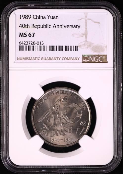 第200674号:1989年建国40周年工作币 NGC MS67,冠军分产量15000枚,少量留入民间,附带原包装。估价:20000--35000
